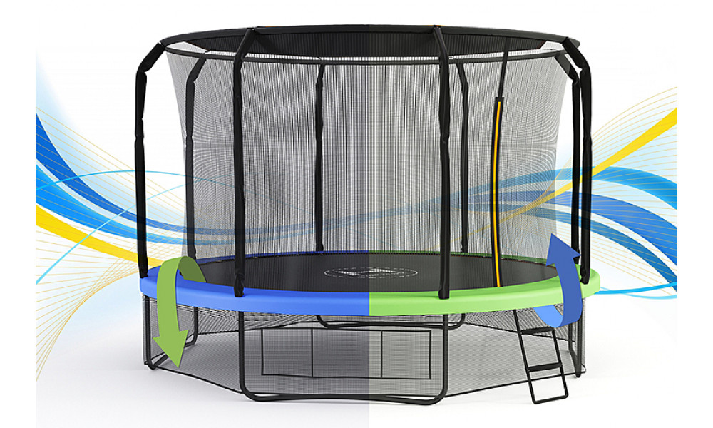 Опция DOUBLE — это возможность использовать две стороны мата! Переверните мат и батут сегодня будет синим, а завтра может стать зеленым. Протестированный против продолжительного воздействия ультрафиолета, этот мат показал что выдержит испытание временем и защитит детей. Теневой тент в подарок к комплекту батута! Оставайтесь всегда защищенными от любых солнечных лучей.