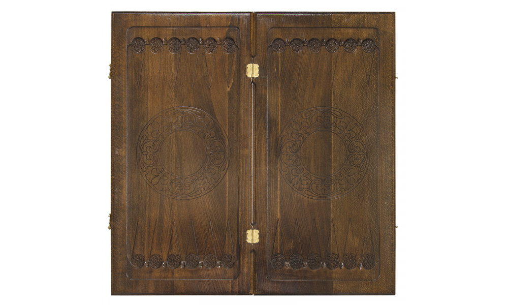 Резные нарды ручной работы известного мастера Григория Устяна. Страна производителя - Армения. На доске данной модели изображен один из 12 знаков зодиака - Водолей. В набор включены 16 светлых и 16 темных фишек, а также 2 игральные кости. Размер доски (см): 62 х 64 х 2. Нарды изготовлены из бука.
